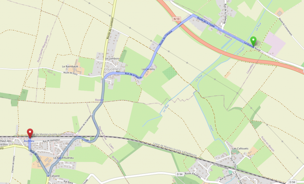 Trajet de la cour des lys à la gare d’Audrieu